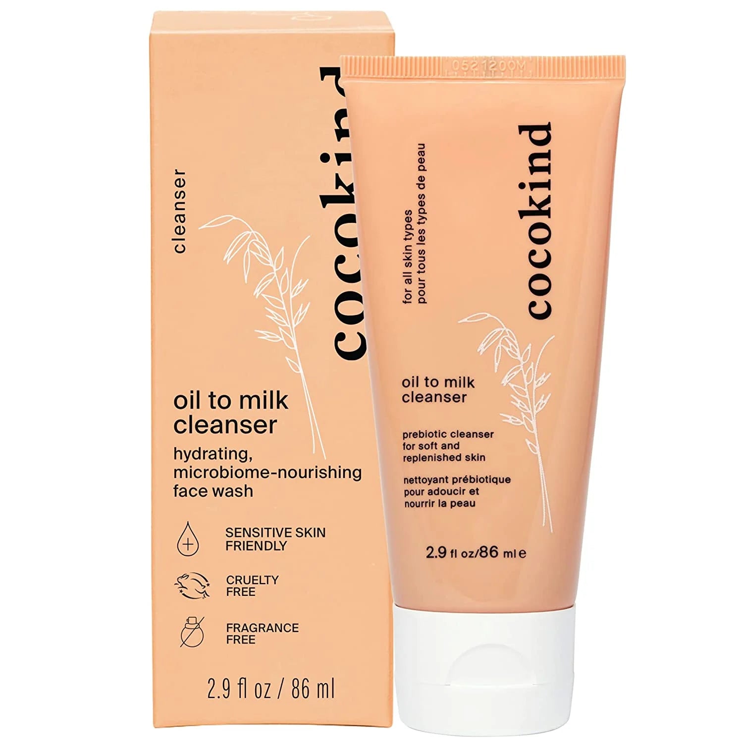 Cocokind’s sensitive skin-friendly Oil to Milk Cleanser starts as an oil balm to loosen makeup and impurities from the skin. It transforms into a creamy milk upon contact with water, offering a gentle yet effective cleansing experience suitable for all skin types. This daily cleanser maintains the skin's moisture balance while effectively removing dirt and makeup, supported by prebiotic fermented oat to nurture a healthy skin microbiome. Unlike typical foaming face cleansers, this hydrating, oil based cleanser supports a healthy skin moisture barrier with a slightly acidic pH when mixed with water.