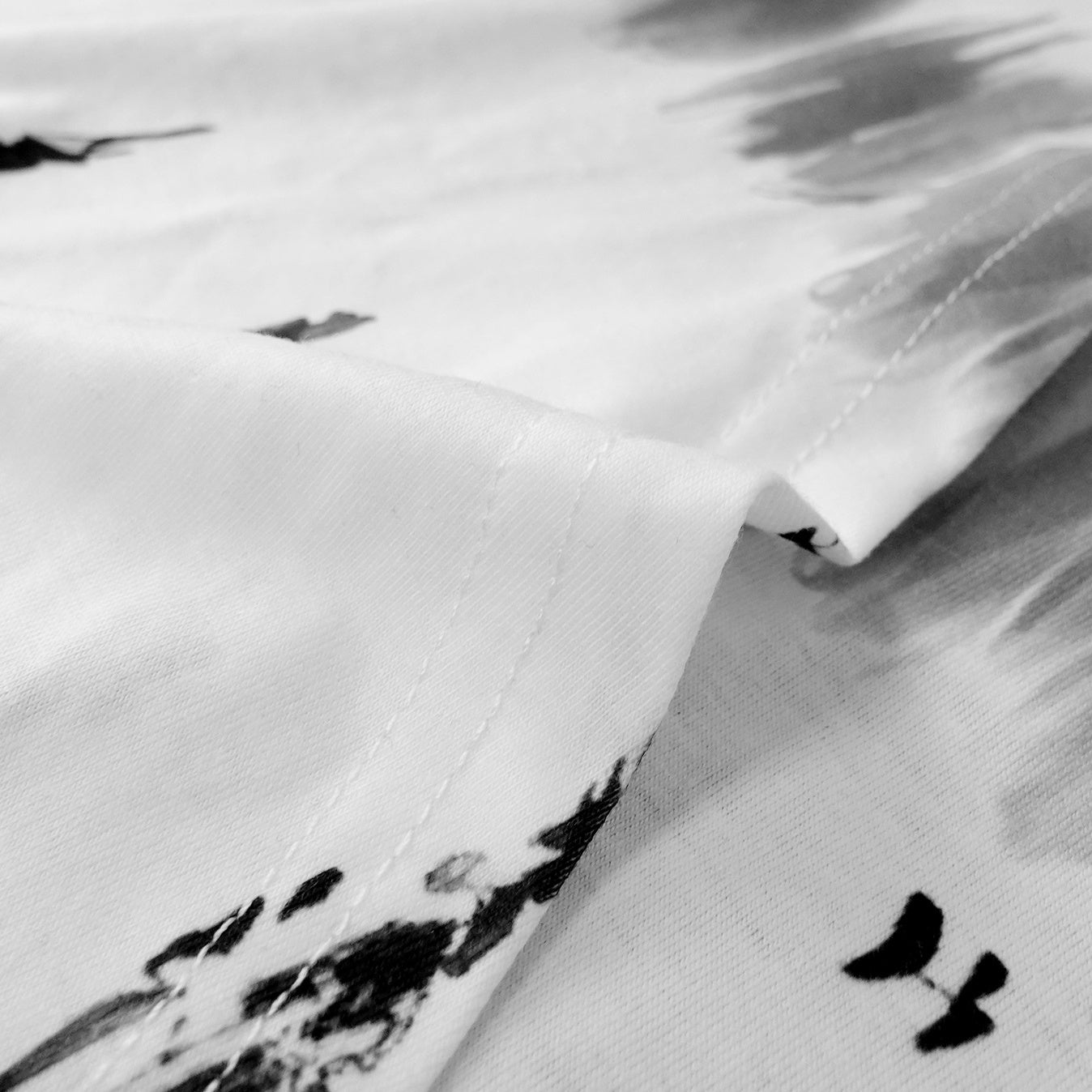 Women's V-neck Printed Black Lined Fashionable Short Sleeved T-shirt