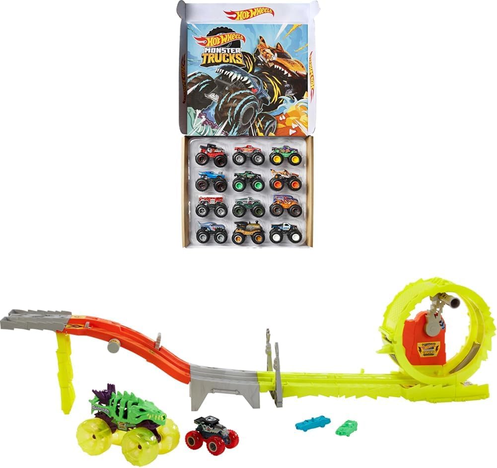 Hot Wheels Monster Trucks 2-Pack, Demolition Doubles Set of 2 Toy Vehicles in 1:64 Scale, for Kids & Collectors (Styles May Vary)